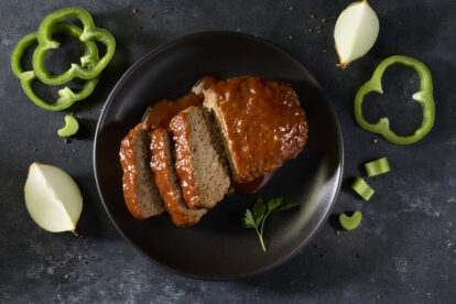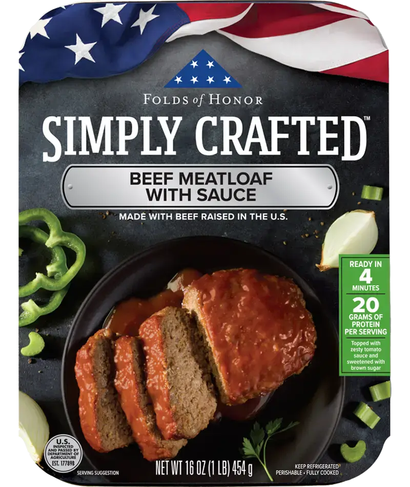 GROUND BEEF, KETCHUP (TOMATO CONCENTRATE, HIGH FRUCTOSE CORN SYRUP, DISTILLED VINEGAR, CORN SYRUP, SALT, SPICE, ONION POWDER, NATURAL FLAVORING), BREAD CRUMBS (BLEACHED WHEAT FLOUR, DEXTROSE, SALT, YEAST, SOYBEAN OIL), BROWN SUGAR (SUGAR, INVERT SUGAR, MOLASSES), EGGS (WHOLE EGGS, NISIN [PRESERVATIVE]), GREEN BELL PEPPERS, WORCESTERSHIRE SAUCE (WATER, DISTILLED VINEGAR, SOY SAUCE [WATER, SALT, HYDROLYZED SOY PROTEIN, CORN SYRUP, CARAMEL COLOR, POTASSIUM SORBATE {PRESERVATIVE}], SUGAR, CORN SYRUP, TAMARIND EXTRACT, CARAMEL COLOR, SPICES, SALT, DEHYDRATED GARLIC, DEHYDRATED ONION, CITRIC ACID, XANTHAN GUM, NATURAL FLAVORS, POTASSIUM SORBATE [PRESERVATIVE]), WATER, CELERY, CONTAINS LESS THAN 2% OF DRIED ONION, WHOLE MILK (MILK, VITAMIN D3), MUSTARD (DISTILLED VINEGAR, MUSTARD SEED, SALT, TURMERIC, SPICES), MODIFIED CORN STARCH, SALT, WHITE DISTILLED VINEGAR, GRANULATED GARLIC, SPICES, CARAMELIZED SUGAR POWDER (CONTAINS POTATO MALTODEXTRIN), NATURAL SMOKE FLAVOR.
