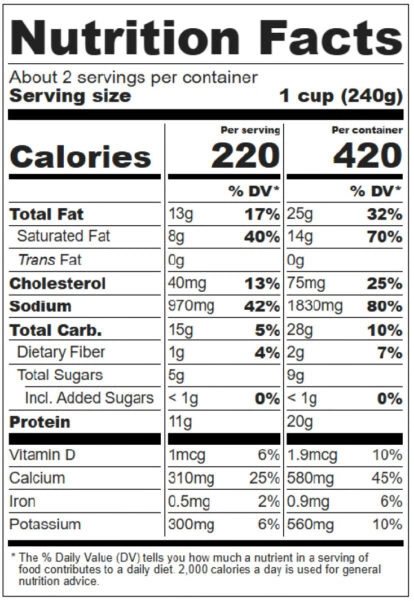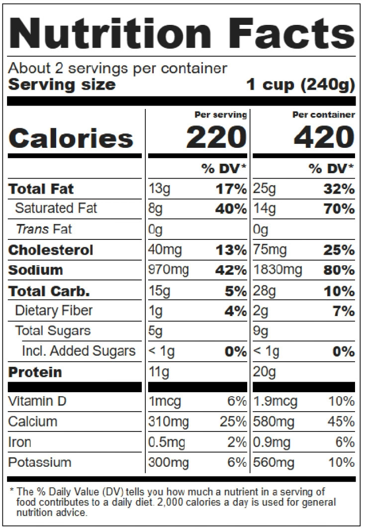 WATER, MILK (MILK, VITAMIN D3 ADDED), PASTEURIZED PROCESS AMERICAN CHEESE SPREAD (CHEESE [MILK, CULTURE, SALT, ENZYMES], WATER, WHEY, SODIUM PHOSPHATES, WHEY PROTEIN CONCENTRATE, SKIM MILK, MILK FAT, SALT, ANNATTO [COLOR]), BROCCOLI, MODIFIED CORN STARCH, CARROTS, AGED CHEDDAR CHEESE (CULTURED PASTEURIZED MILK, SALT, ENZYMES, ANNATTO [COLOR], ANTICAKE [POTATO STARCH, POWDERED CELLULOSE]), CONTAINS LESS THAN 2% OF CHEDDAR CHEESE BASE (CHEESE [MILK, CULTURE, SALT, ENZYMES], WATER, SODIUM PHOSPHATE, ENZYMES], SALT, YEAST EXTRACT, CORN OIL, CREAM, BUTTER [CREAM, NATURAL FLAVORING], WHEY, SUGAR, MUSTARD SEED, NATURAL FLAVOR), SALT, SODIUM CITRATE, SPICES, NISIN PREPARATION (NISIN [PRESERVATIVE], SALT, ROSEMARY EXTRACT).