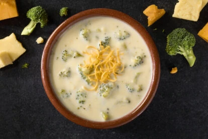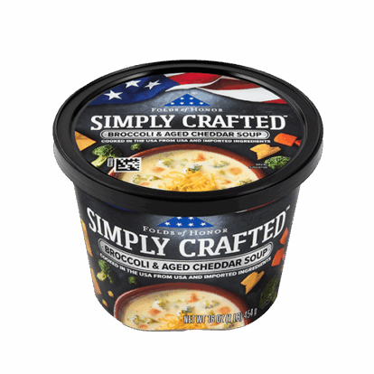 This classic broccoli cheese soup delivers smooth, satisfying flavor with tender broccoli florets, carrots, and a velvety rich blend of Aged Cheddar cheese, all seasoned with savory spices.