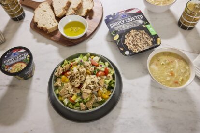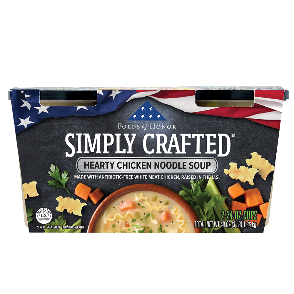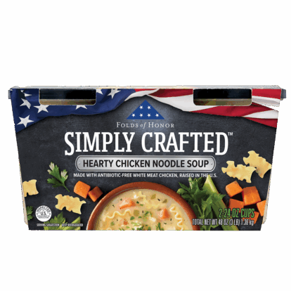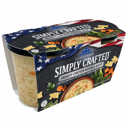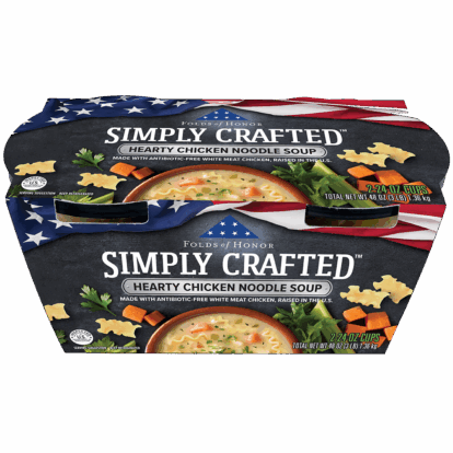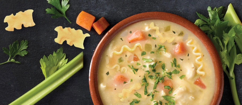 WATER, COOKED WHITE MEAT CHICKEN WITH RIB MEAT, CARROTS, CELERY, ONIONS, ENRICHED MACARONI PRODUCT (SEMOLINA [WHEAT], EGG WHITES, NIACIN, FERROUS SULFATE, THIAMIN MONONITRATE, RIBOFLAVIN, FOLIC ACID), CANOLA OIL, CHICKEN BASE (COOKED CHICKEN, SALT, CHICKEN FAT, SUGAR, MALTODEXTRIN [CORN], HYDROLYZED VEGETABLE PROTEIN [HYDROLYZED WHEAT GLUTEN, SAFFLOWER OIL], POTATO STARCH, DRIED ONION, YEAST EXTRACT, NATURAL FLAVORING, SPICE EXTRACTIVE), CONTAINS LESS THAN 2% OF MODIFIED CORN STARCH, SPICES, NISIN PREPARATION (NISIN [PRESERVATIVE], SALT, ROSEMARY EXTRACT), SALT.